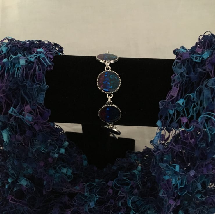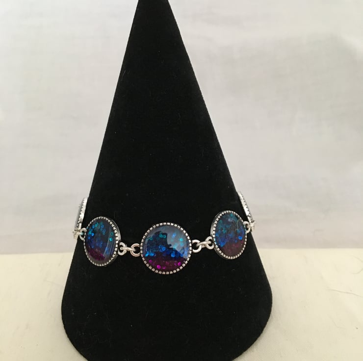 This lovely bracelet has 6 tricolour round settings each one measures 16mm.