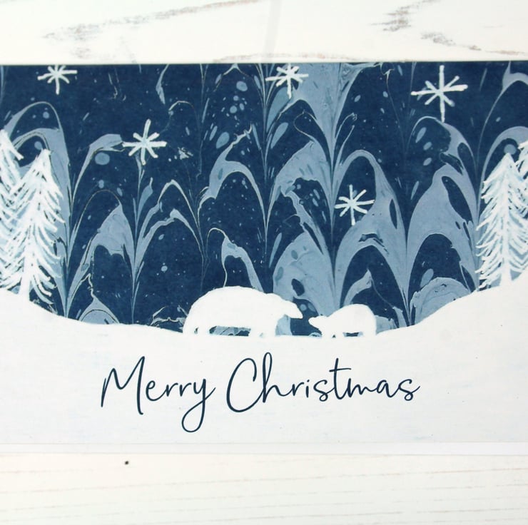 All designs are my own artwork created directly onto a sheet of my marbled paper in navy blue and white which has then been digitally scanned and printed.