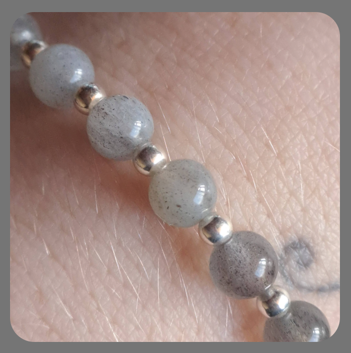 The Labradorite beads are about 5mm each and the sterling silver beads are 3mm.