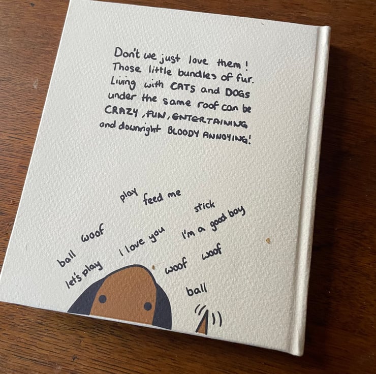 I live in a household of 3 cats and 2 dogs and the joy and sometimes frustration (mostly joy) was the inspiration for making this book.