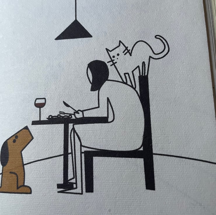 A whimsical look at living with both cats and dogs under one roof.