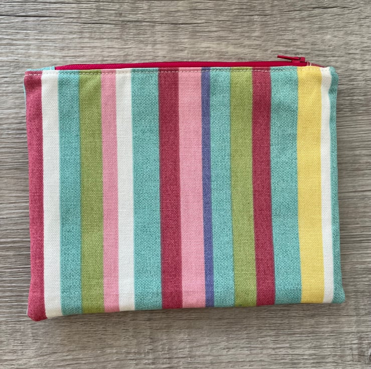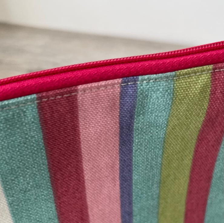 This zipped pouch features a striking rainbow coloured cotton print on the front and the back