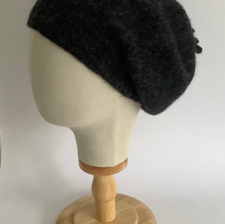 SLOUCH BEANIE .Hat 'Elodie' . Luxurious baby alpaca , merino blend . D. Grey.