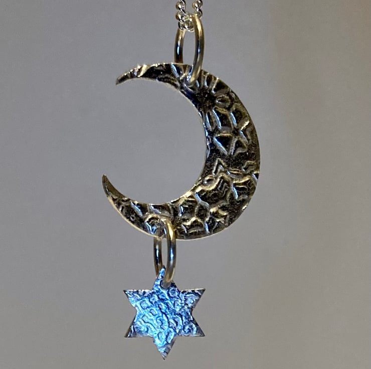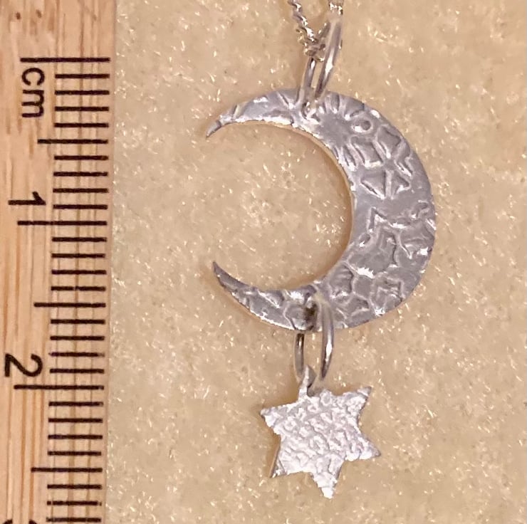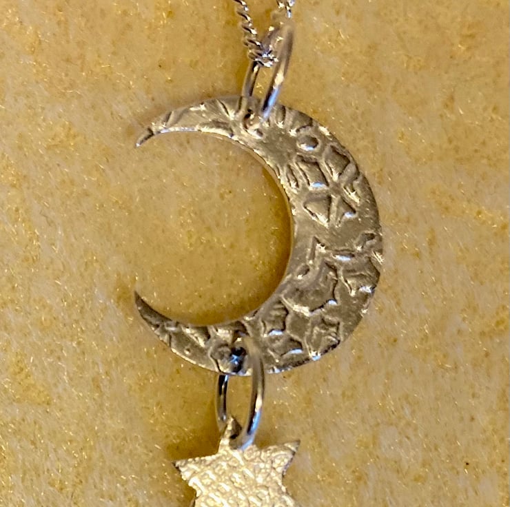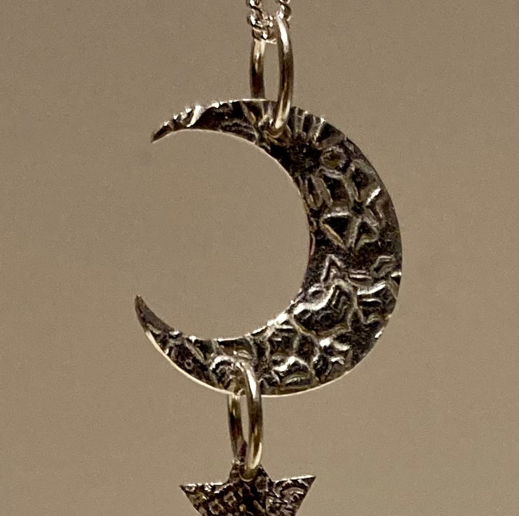 Lovely silver moon and star pendant on an 18” chain.