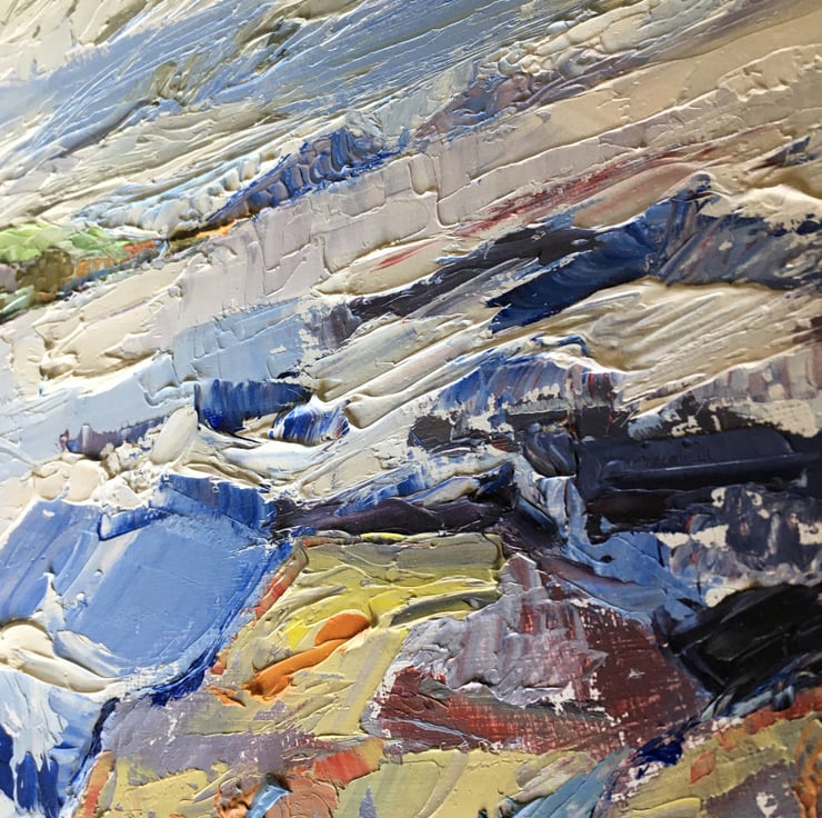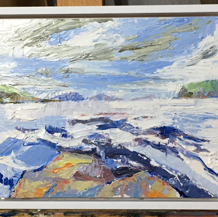 During lockdown in the summer of 2020 I was living on the Isle of Skye. I used my daily walk to visit the beach at the end of the road where I would paint the evening view when the weather was fine enough.