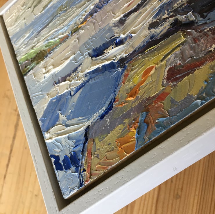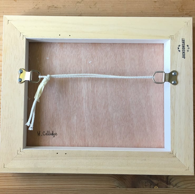 This is a framed oil painting on board. The oil painting on its own measures 20cm by 25cm or 8 inches by 10 inches. With the wooden frame it measures 23cm by 28cm or 9 inches by 11 inches. I have attached D rings and picture cord to the back so that you can easily hang it up.