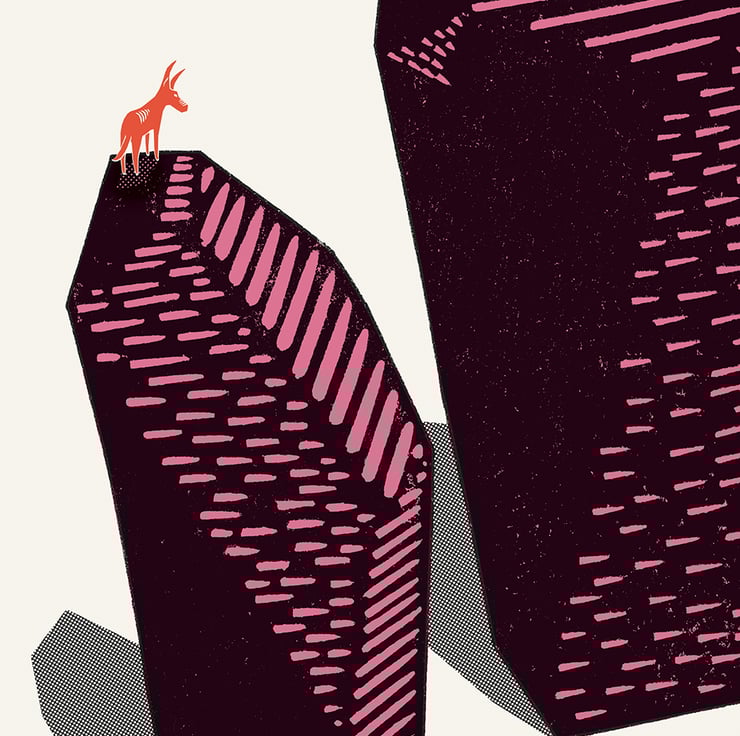 This is from my second series of prints featuring donkeys exploring a sculptural landscape. I created the prints originally for my first major solo exhibition, entitled 'Donkey Nonsense' at The Millennium Gallery in Sheffield in 2023.
