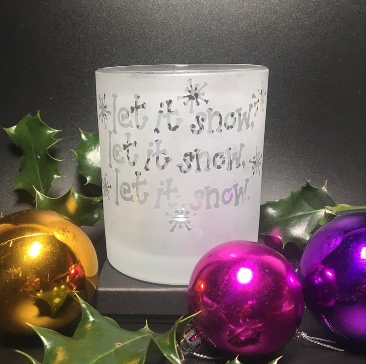 This glass tealight holder has the words from the classic Christmas hit “Let It Snow! Let It Snow! Let It Snow!” on both sides. If you’re looking to bring some festive warmth into your home at Christmas this tealight holder will light up your mantelpiece or take pride of place with your table decorations.