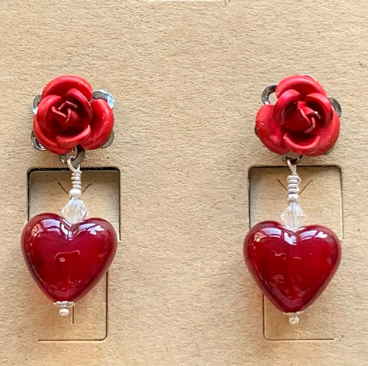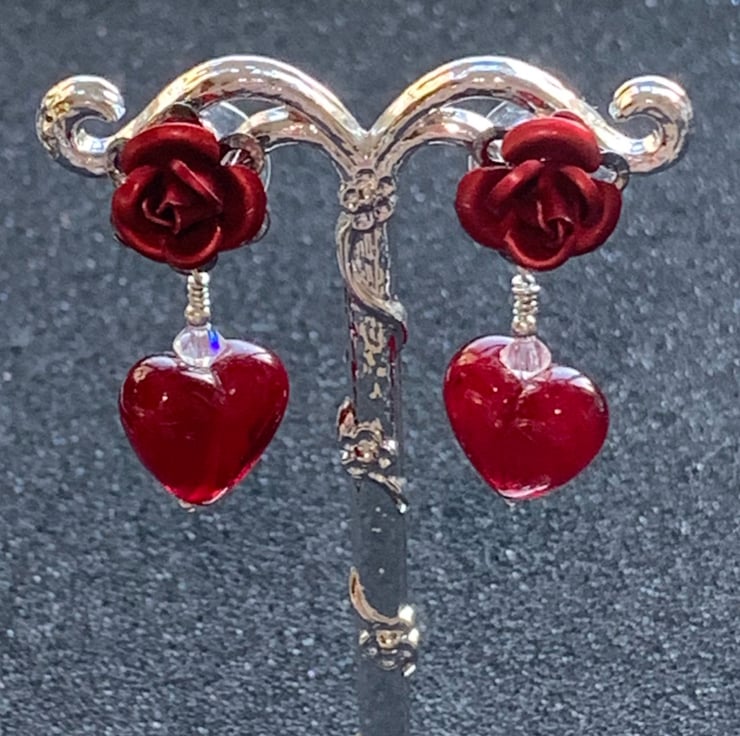 sterling silver - lampwork glass beads - heart earrings - by amanda rudkin
