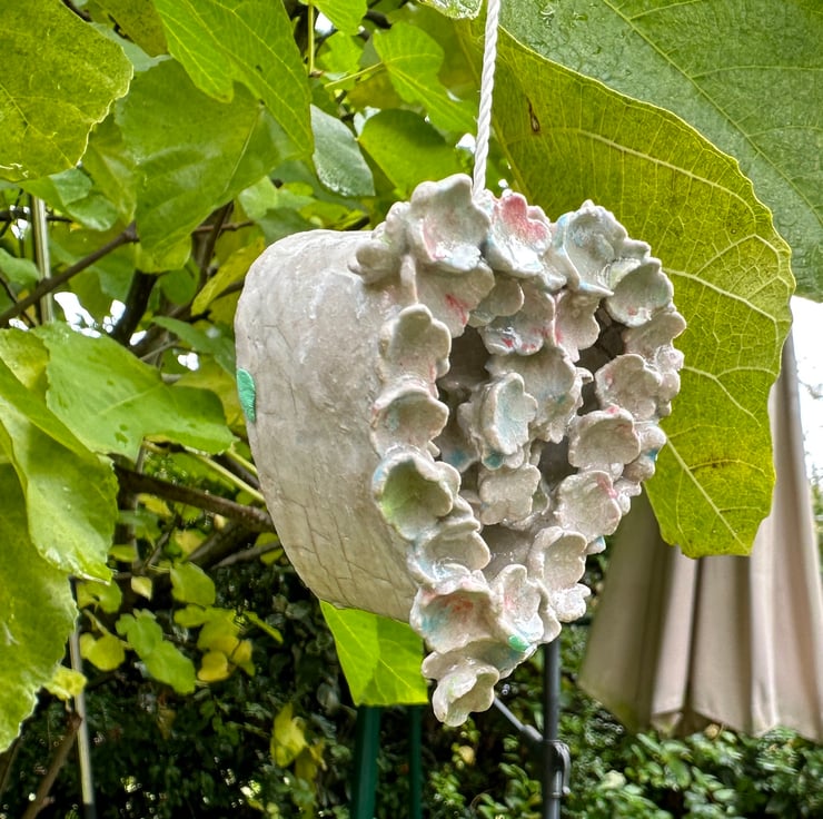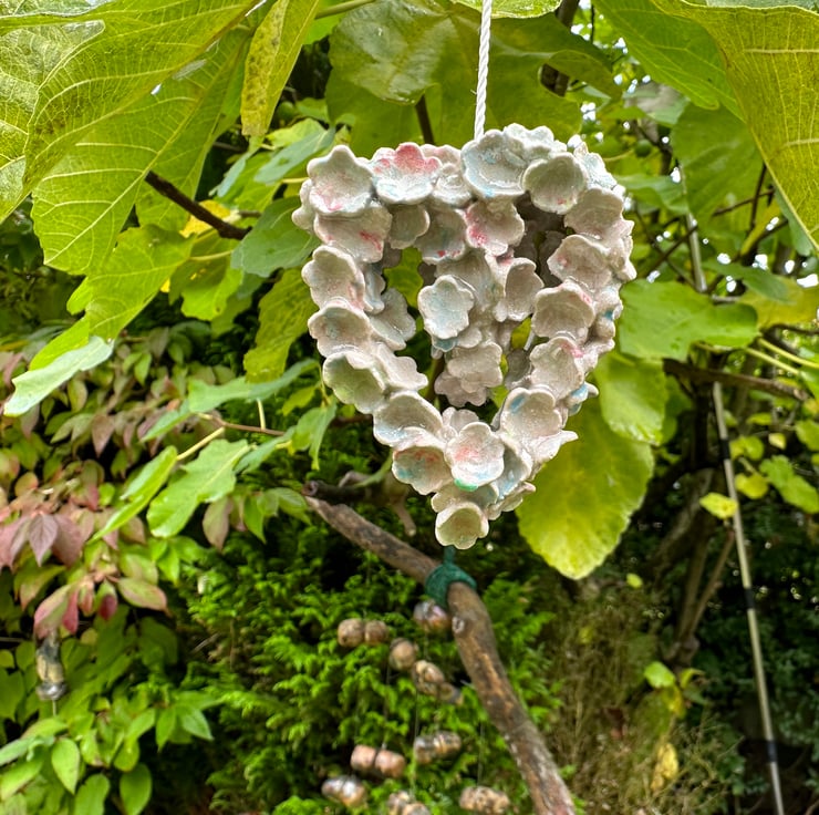 The versatility of this handmade ceramic mobile allows it to be used in various settings. It can serve as a charming centrepiece in your living room, adding a touch of elegance and creativity to your space. It can also be hung in your bedroom, creating a peaceful and calming atmosphere that encourages relaxation.