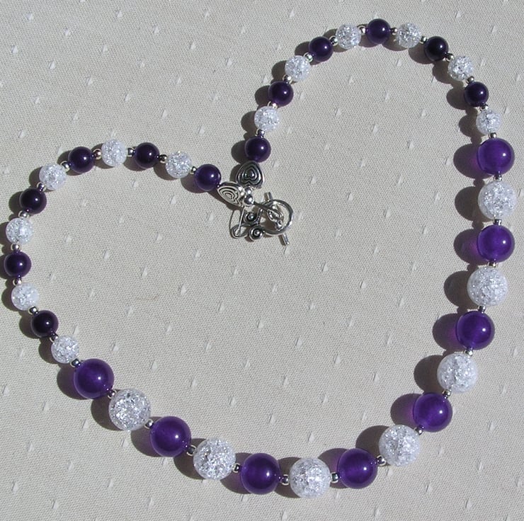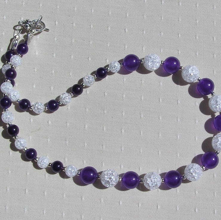 This Stunning Sumptuous Necklace is made from alternating Purple Amethyst and Crackled Clear Quartz chunky round beads and for that added extra sparkle tiny Silver spacer beads - a Striking Cool combination that will look stunning either worn casually or with something more Elegant for a Special Evening out