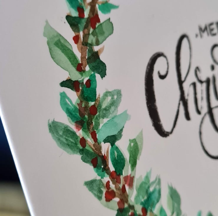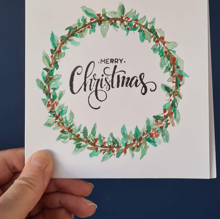 This is a handpainted floral wreath Christmas card (NOT a print) on quality card. Also available as part of a multipack (see 'multipacks at value prices'), if you would like to buy several cards for a discounted price.