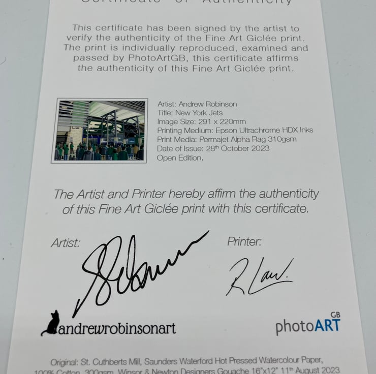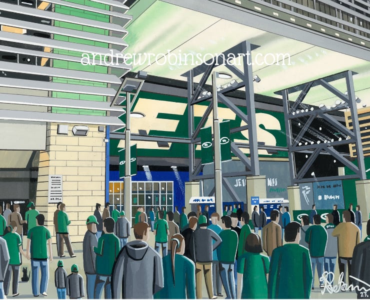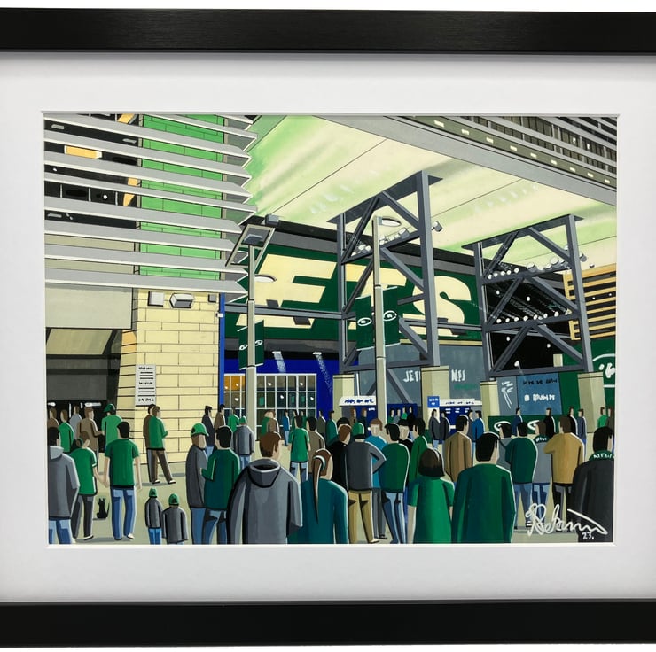Titled ‘Gang Green Scene' this is a unique New York NFL framed print direct from myself the artist. My artworks are a celebration of the match day experience and of stadium architecture.