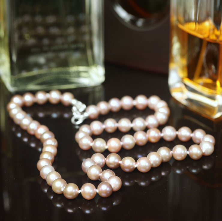 I have strung these pearls on silk: the traditional medium, and have knotted between each pearl, an old-fashioned technique that ensures a good drape and also security in the unlikely event that the silk breaks.