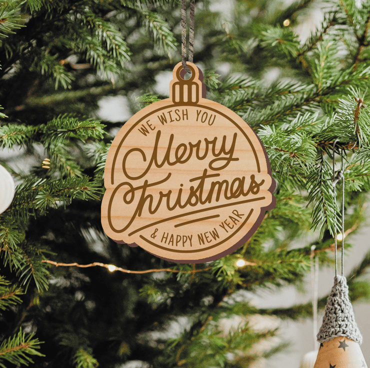 We Wish You Merry Christmas Bauble - Wooden Xmas Ornament Winter Home Decor Gift