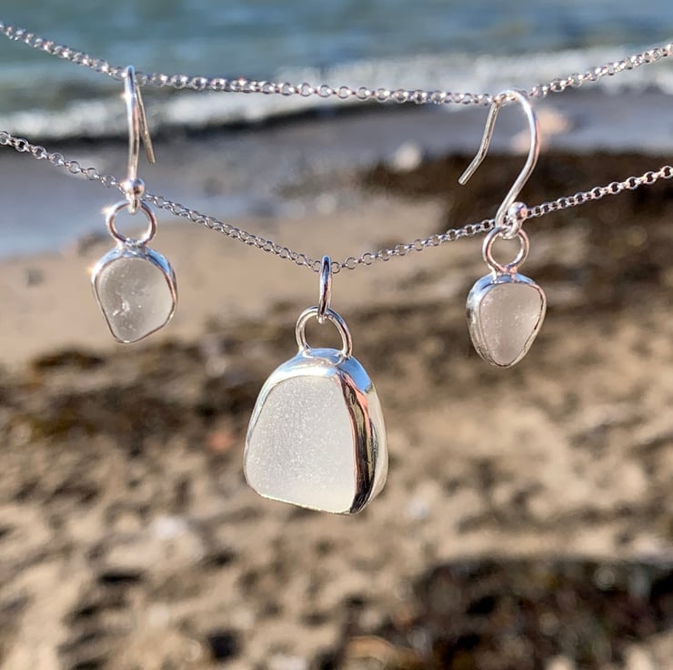 These pieces of beautiful frosted white seaglass were found along the UK's South West coastline and have been handpicked and paired together to make a unique jewellery set.