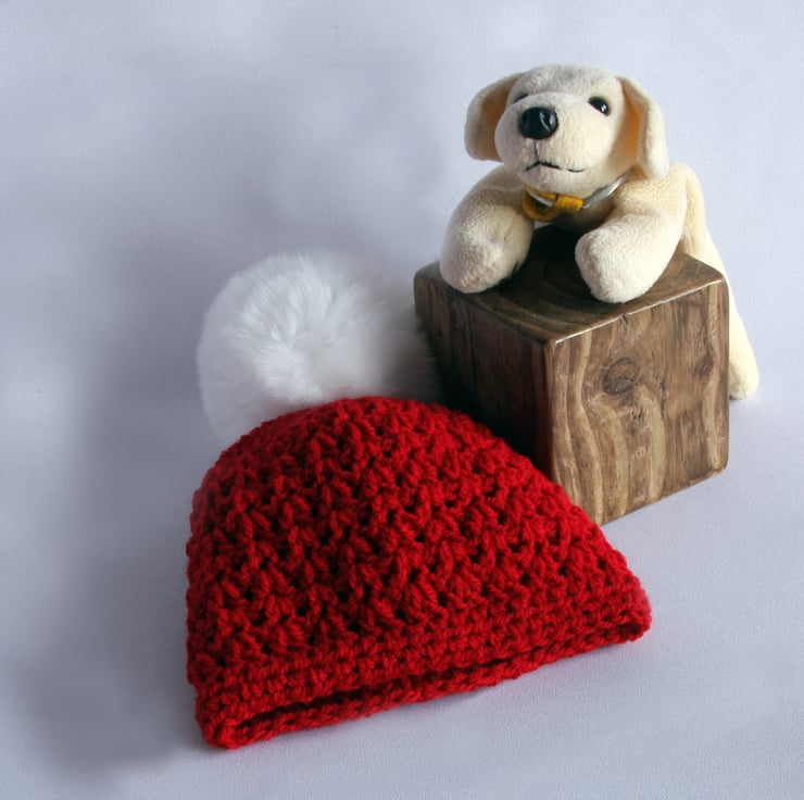 Introducing my adorable Red Christmas Baby Hat, perfect for your little girl this holiday season! This hat features a vibrant red color, capturing the festive spirit of Christmas. The faux fur pompom adds a touch of cuteness and elegance, making your baby girl look even more irresistible. Crafted with love and care, this hat is made with soft and cozy materials to keep your little one warm during chilly winter days. Whether it's for a family gathering, a holiday photoshoot, or a gift for your loved ones, this Red Christmas Baby Hat is a must-have for any fashion-forward baby girl this Christmas!