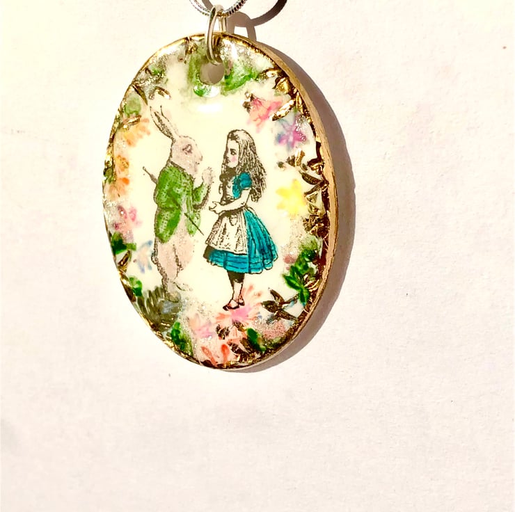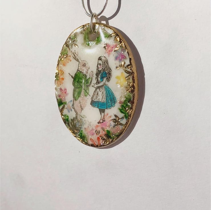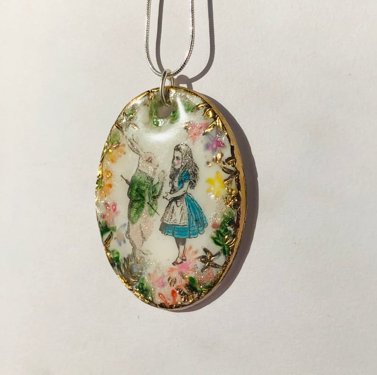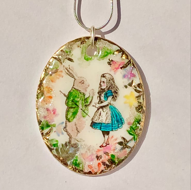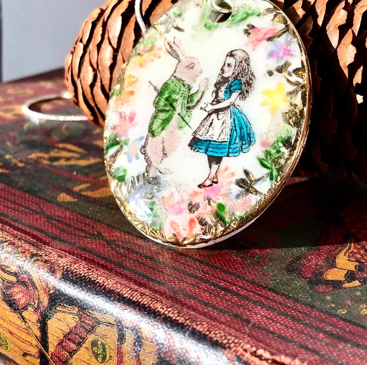 Vegan porcelain pendant handcrafted, hand painted in beautiful and Magical North Wales. All my work is hand made from vegan porcelain clay , painted and fired in my kiln up to five times for 12 hours to seal each layer of paint, real 22 carat gold lustre and resins for extra strength. All totally unique. Come on a silver plated snake necklace and gift boxed.