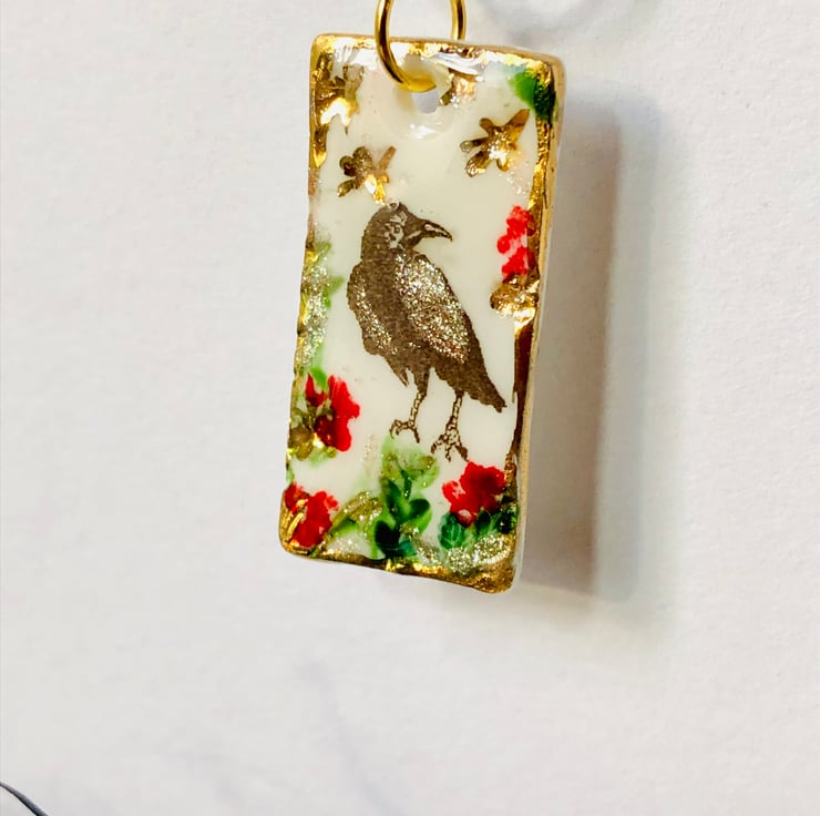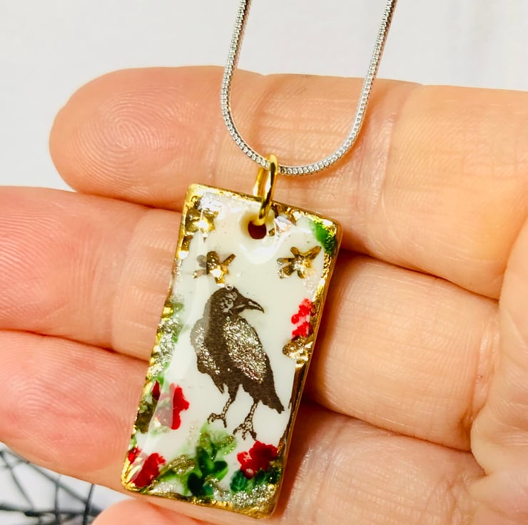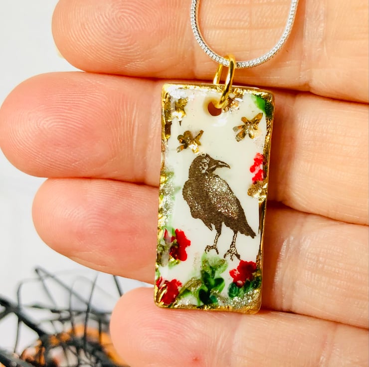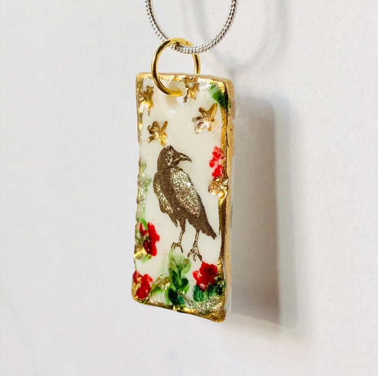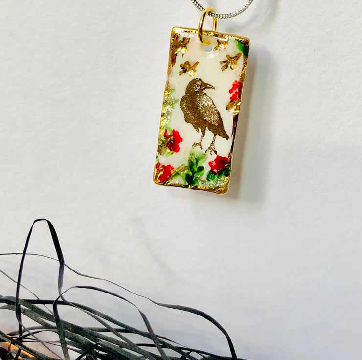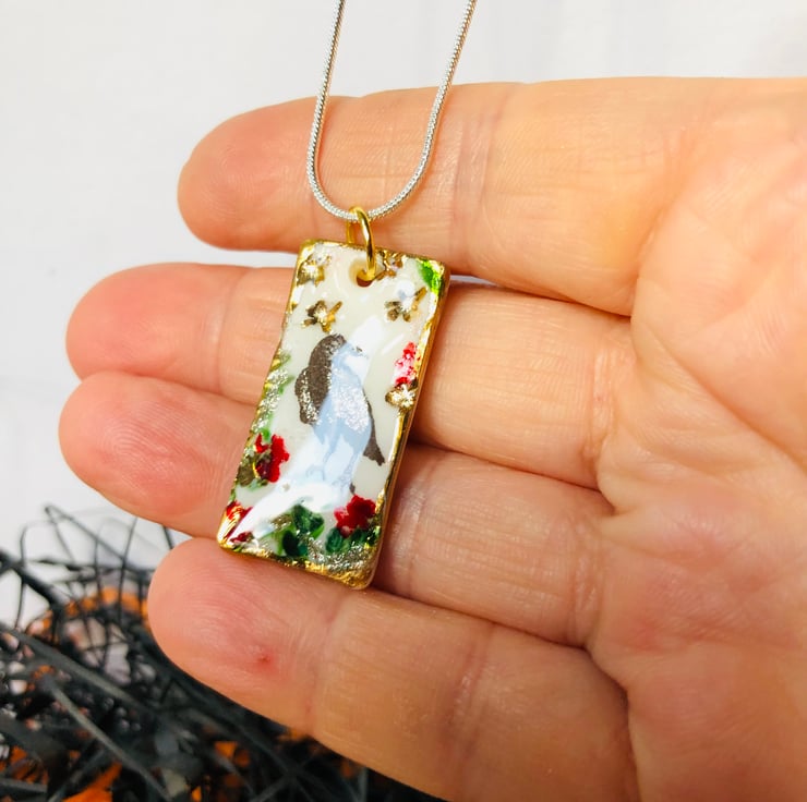 Vegan porcelain pendant handcrafted, hand painted in beautiful and Magical North Wales. All my work is hand made from vegan porcelain clay , painted and fired in my kiln up to five times for 12 hours to seal each layer of paint, real 22 carat gold lustre and resins for extra strength. All totally unique. Come on a silver plated snake necklace and gift boxed.