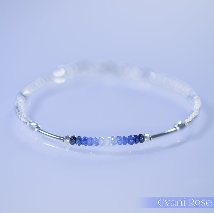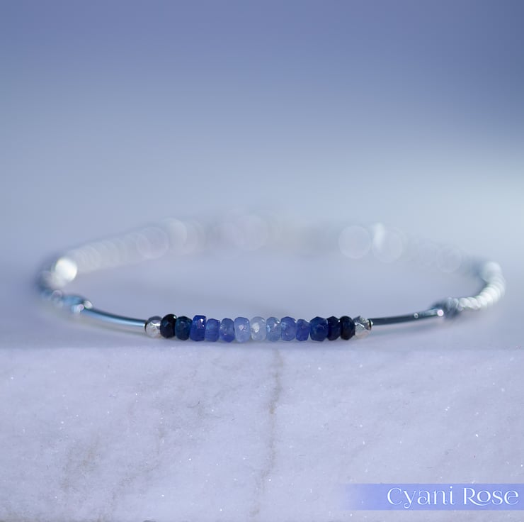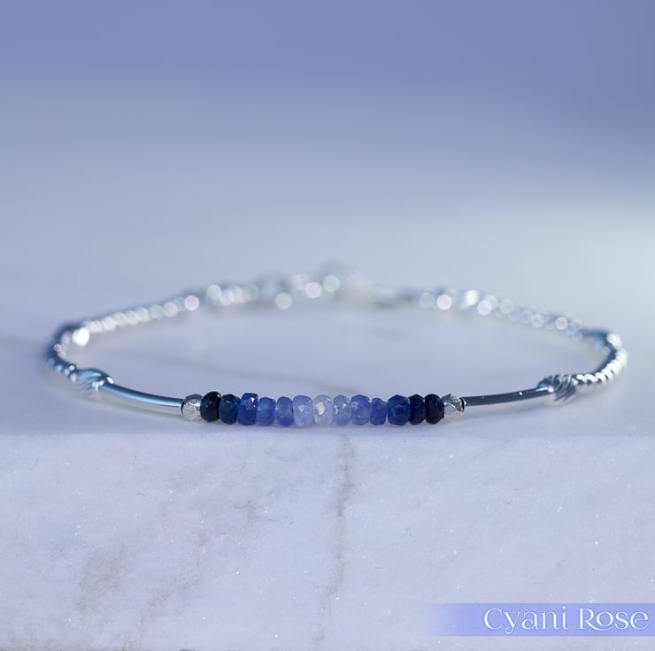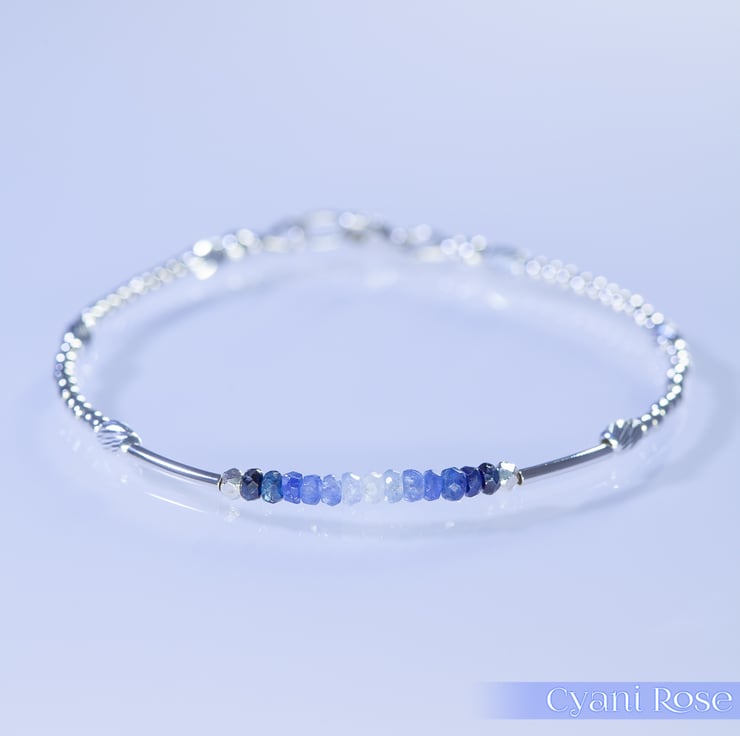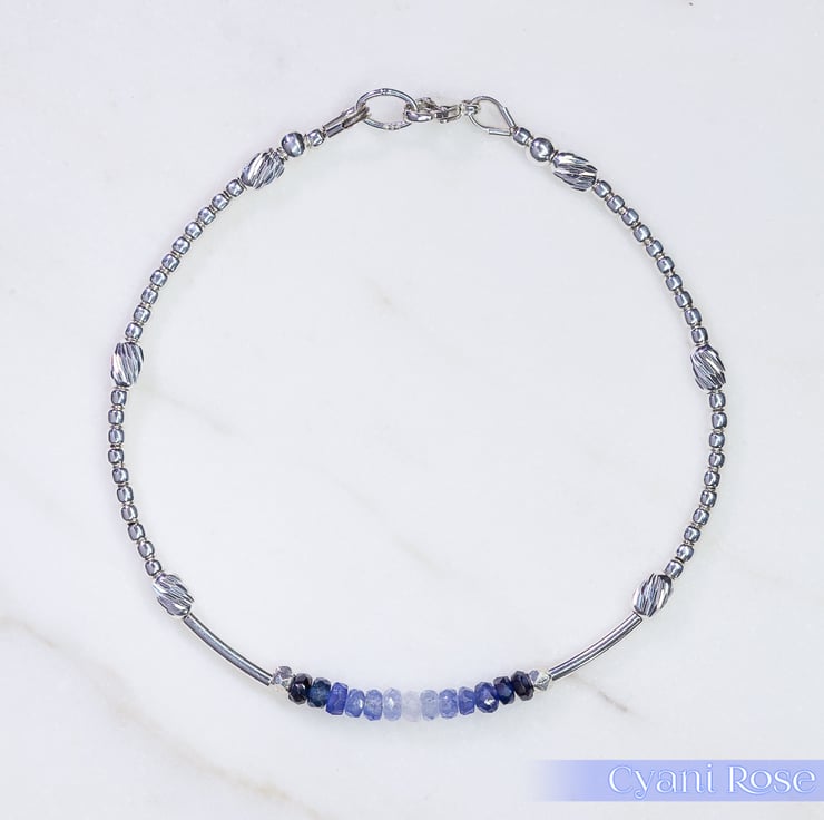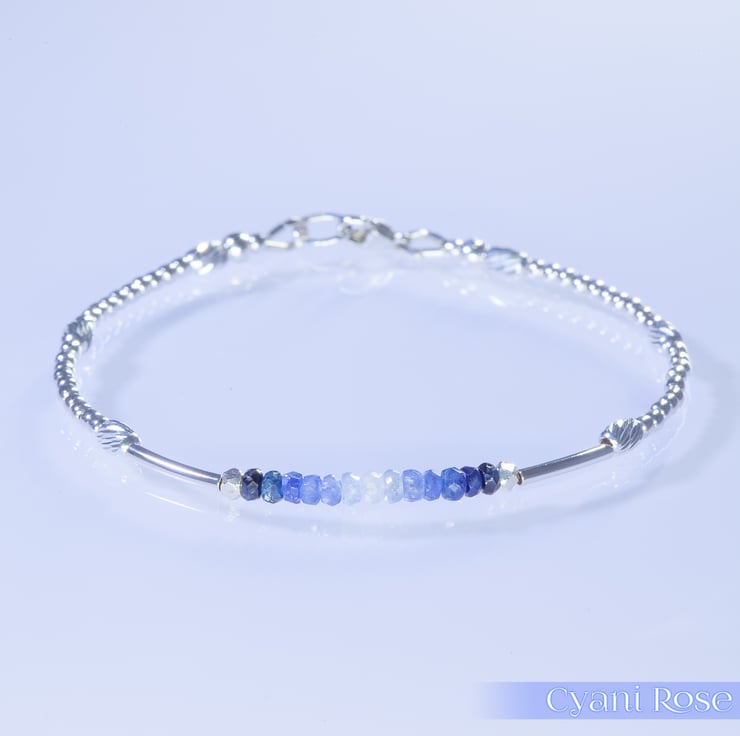 We have handmade this one-off beautiful bracelet using genuine shaded sapphire beads and a range of sterling silver beads and findings. It will make a stunning gift.