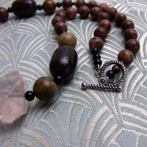 With this short chunky semi-precious gemstone handmade necklace I have used a toggle clasp as a fastener.