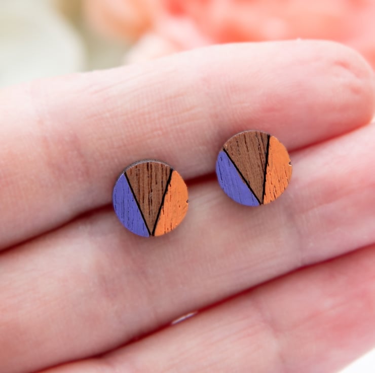 Featuring laser cut wooden circles, these fun and quirky earrings are hand-painted and finished with a matt varnish to protect them. As these earrings are made to order, they can be painted in different colours if required. Please just leave a note when ordering if you would like to request a colour change.