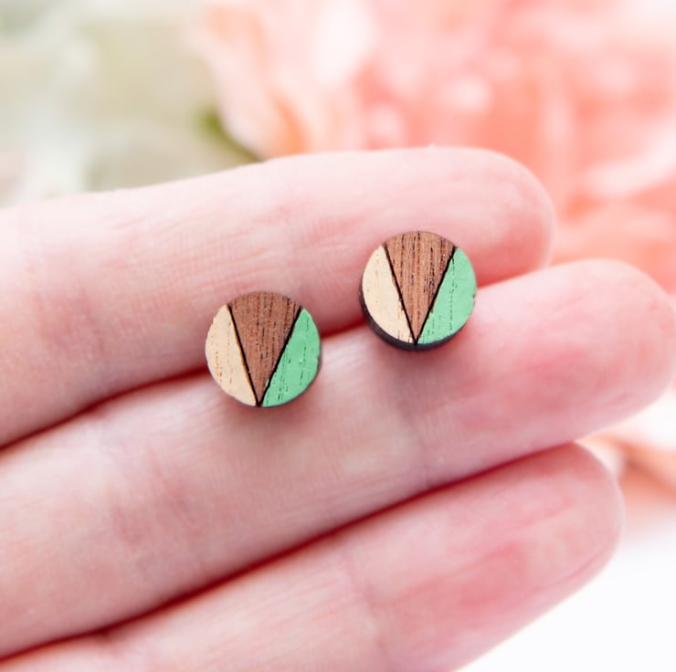 Featuring laser cut wooden, geometric circles, these fun and quirky earrings are hand-painted and finished with a matt varnish to protect them. As these earrings are made to order, they can be painted in different colours if required. Please just leave a note when ordering if you would like to request a colour change.
