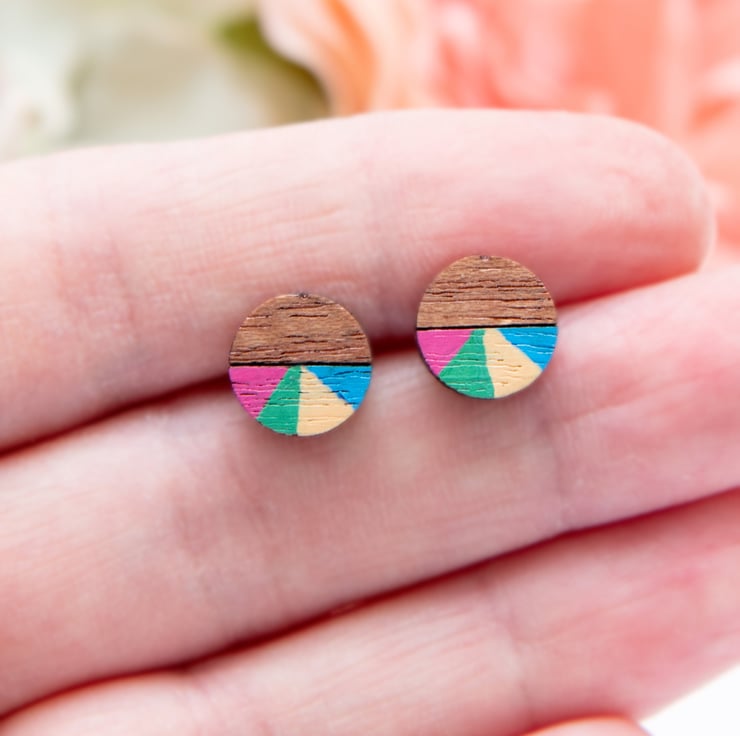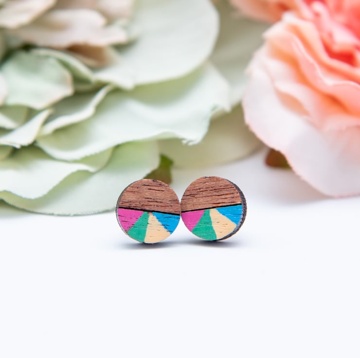 Featuring laser cut wooden circles, these fun and quirky earrings are hand-painted and finished with a matt varnish to protect them. As these earrings are made to order, they can be painted in different colours if required. Please just leave a note when ordering if you would like to request a colour change.