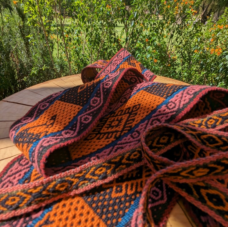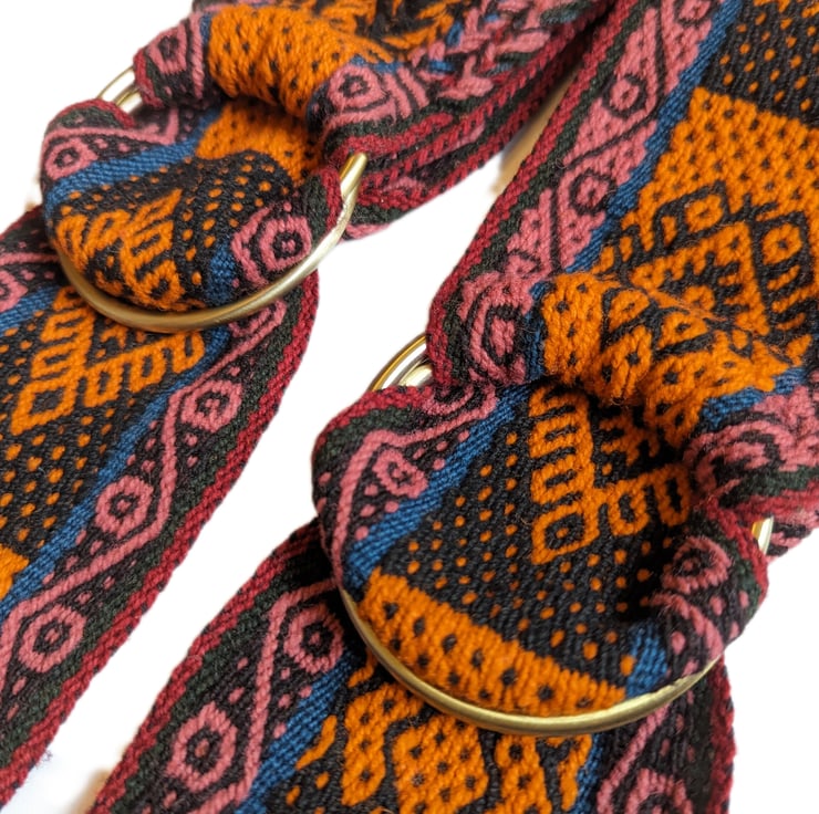 I was inspired to see the women in the highland communities weaving with so much love and happiness. So I got one of the belts, found some rings and start sewing to make my own yoga strap. It was so practical and beautiful that I started to work with one of them, so she weaved the designs I wanted and then I turned them in a mat yoga strap. I am glad I can support their work.