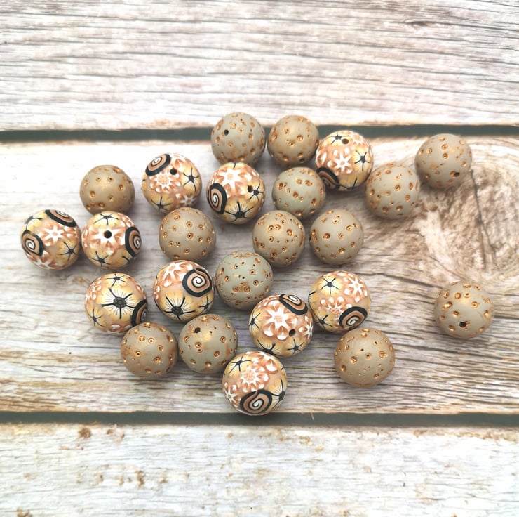 Set 2 - 14 15mm crater beads - beige with bronze hues.