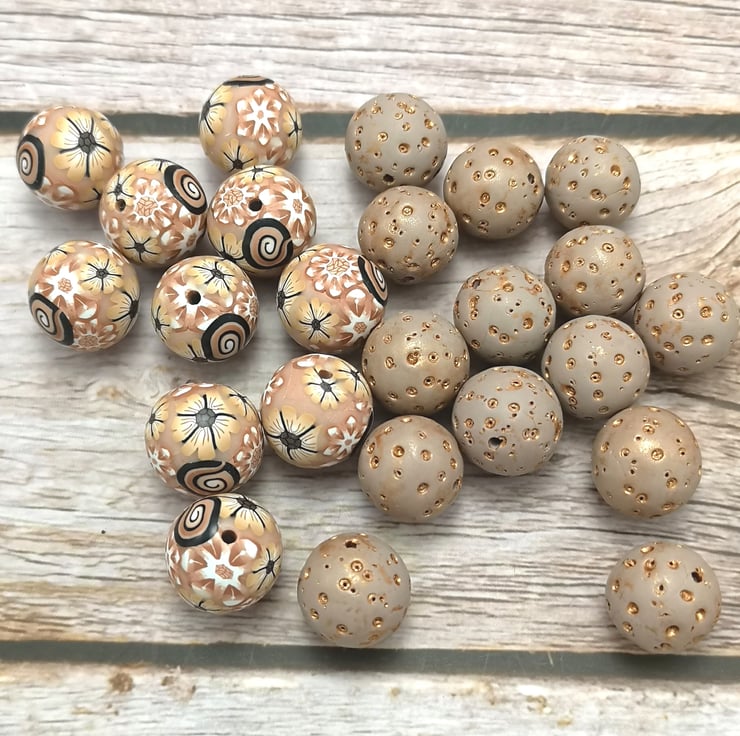 Set 2 - 14 15mm crater beads - beige with bronze hues.