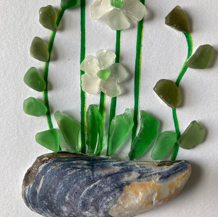 I’ve made it with a mussel shell and sea glass that I have collected from the beaches of Cornwall.