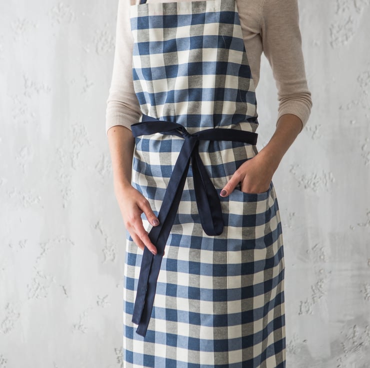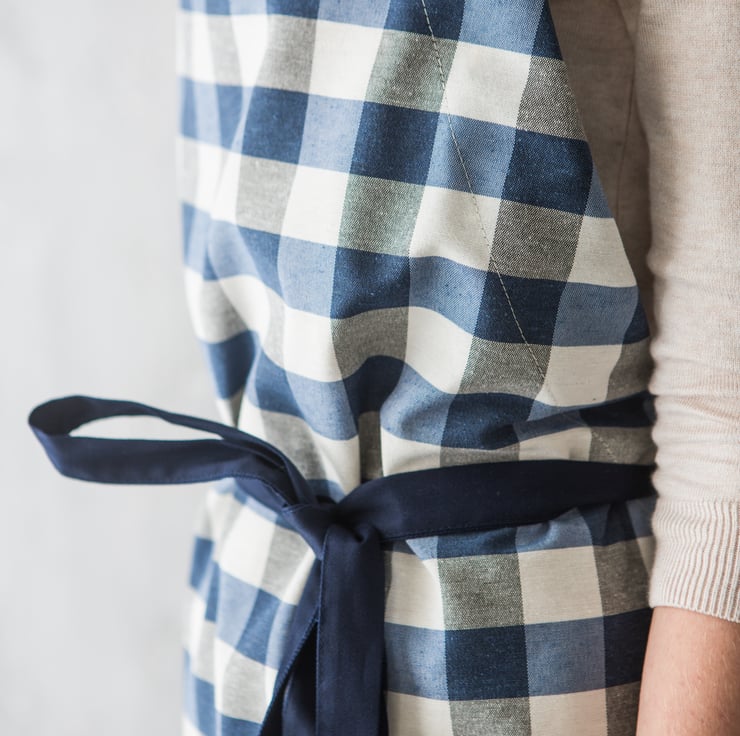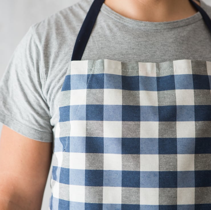 This gingham checked apron in blue and white is truly unisex - men and women, girls and boys will have soo much fun cooking, baking and crafting in these chef aprons!