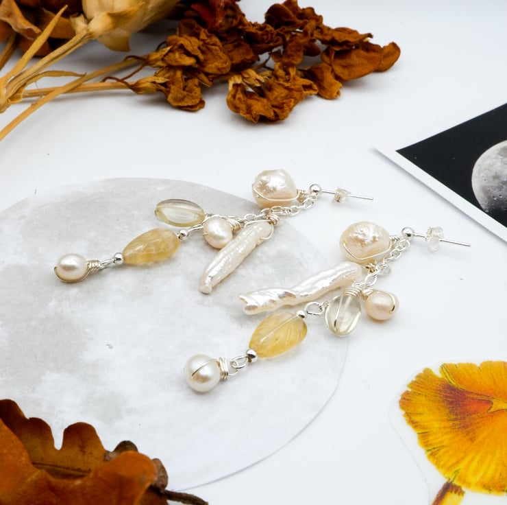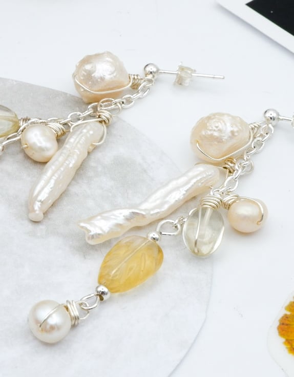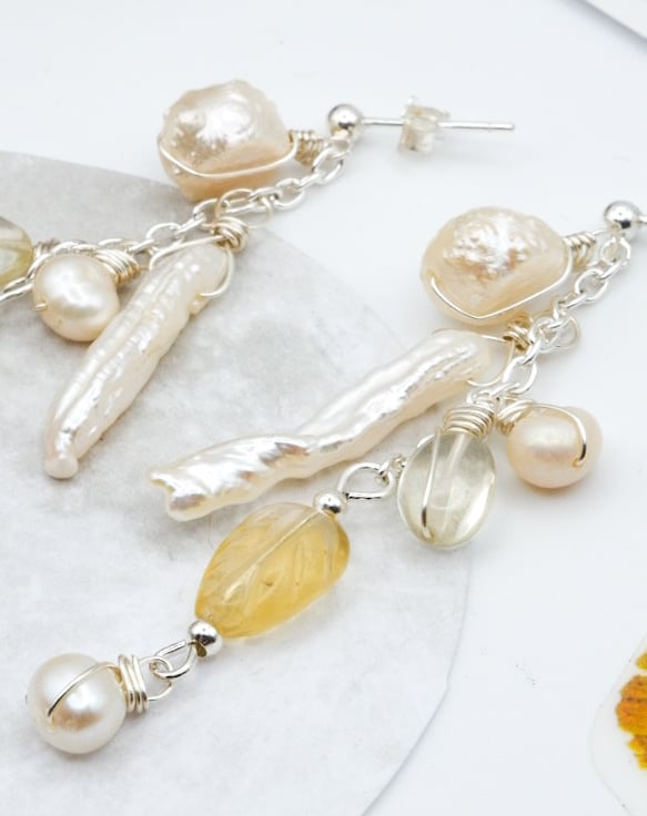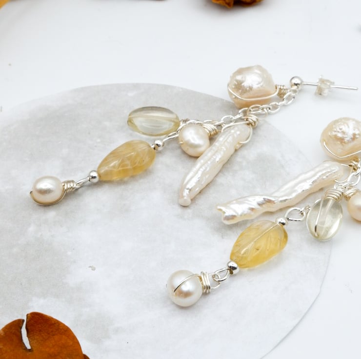 Welcome to my listing for our handmade Citrine and freshwater baroque pearl earrings!