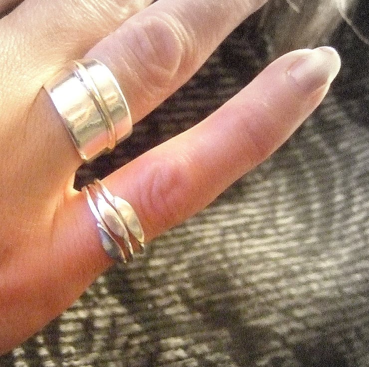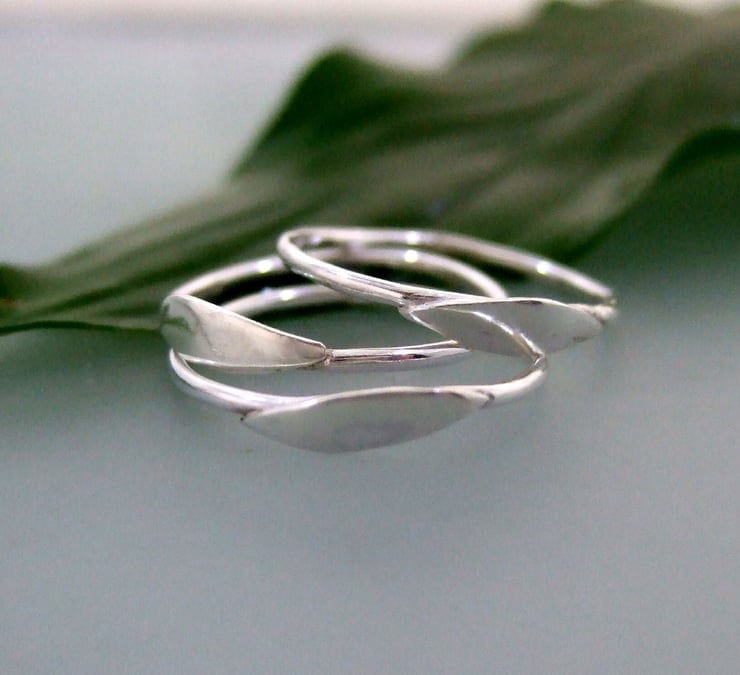 Stylised leaf stacking rings have been polished tumbled and polished again for strength and extra sparkle!