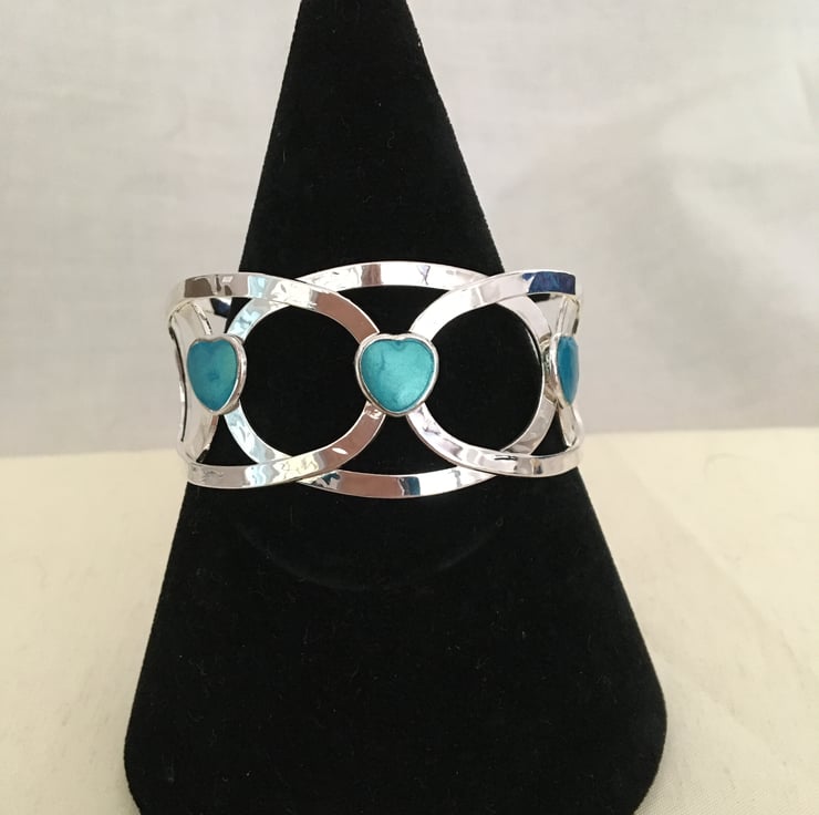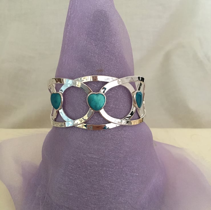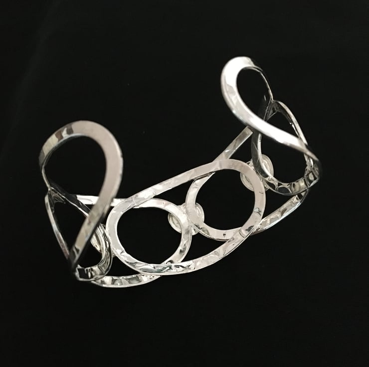 The bangle fits a 6.5ins wrist comfortably but no larger. The end gap for slipping over the wrist measures 1in.