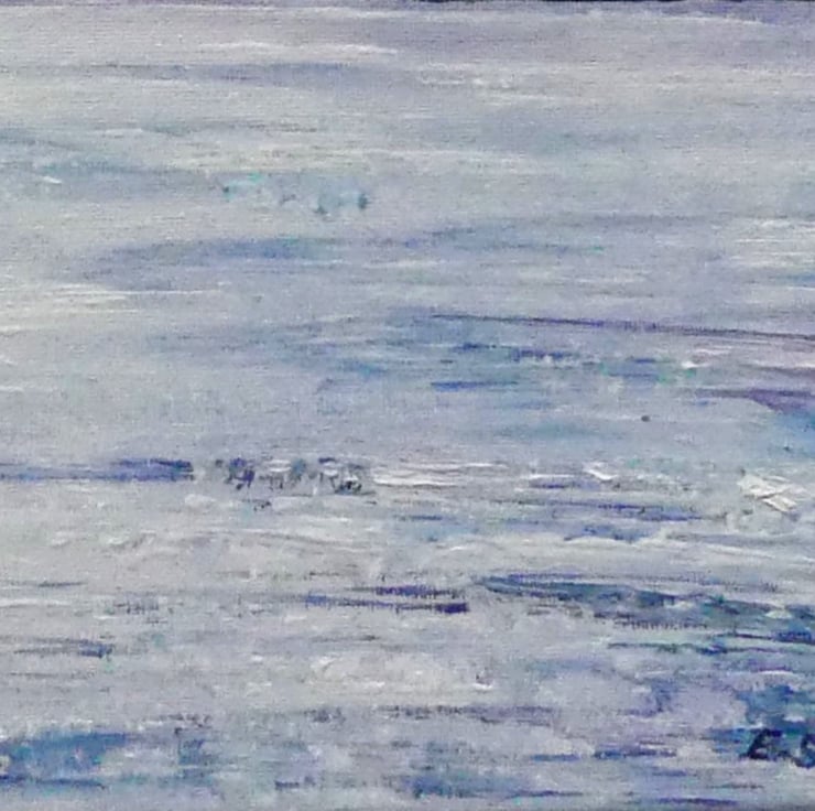 The painting is 20 x 16 x 0.5 inches and the sides are painted white. Dated and signed on the lower right corner The work can be hung unframed with picture hanging fittings in place.