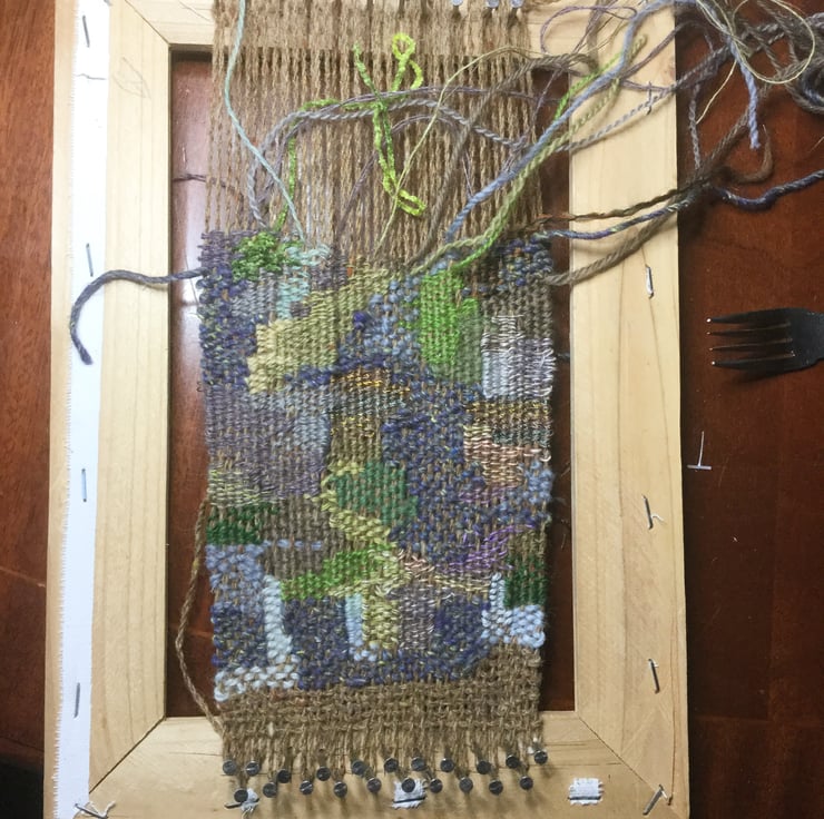 Mounted handwoven 3D tapestry weaving and crochet artwork