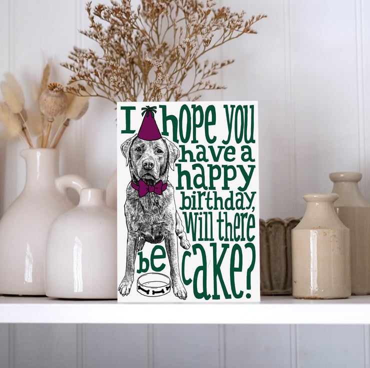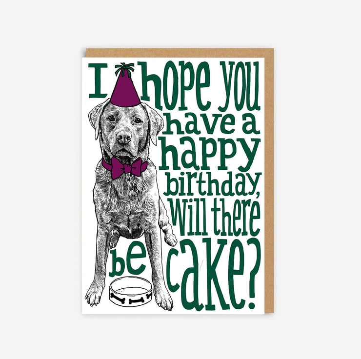 If you've ever worked in a place where people bring in cakes for their birthday, and you wish them a happy birthday...but you also want to know if they brought cakes in? Yeah, this is the card. Also perfect for dog, Labrador and animal lovers!