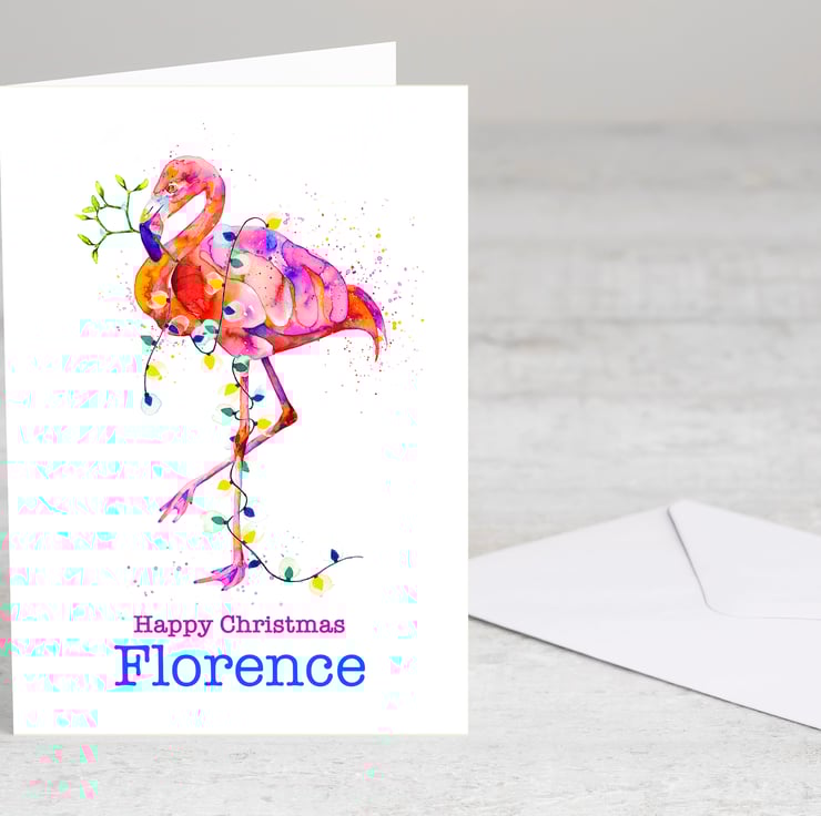 Personalised Flamingo Christmas Card premium quality exotic animal