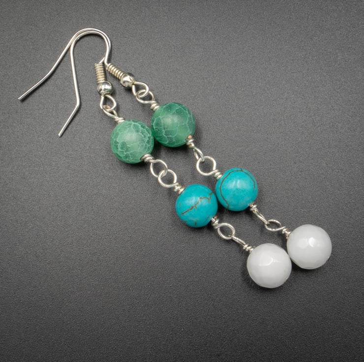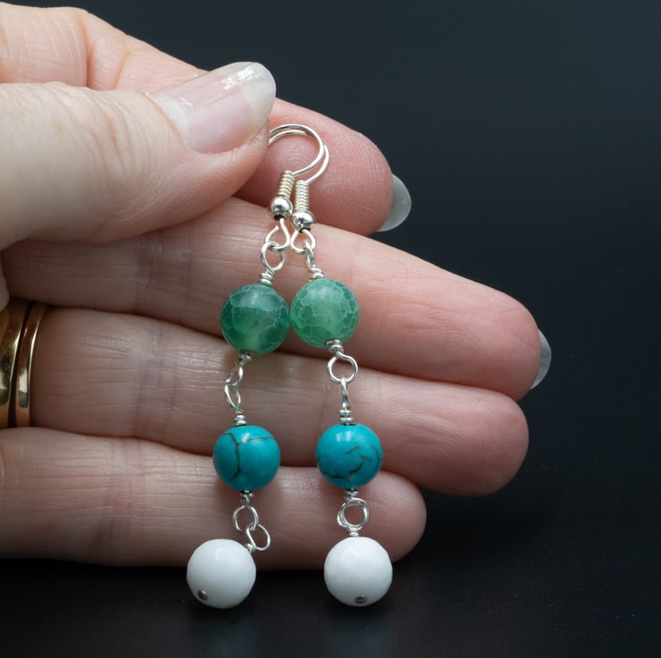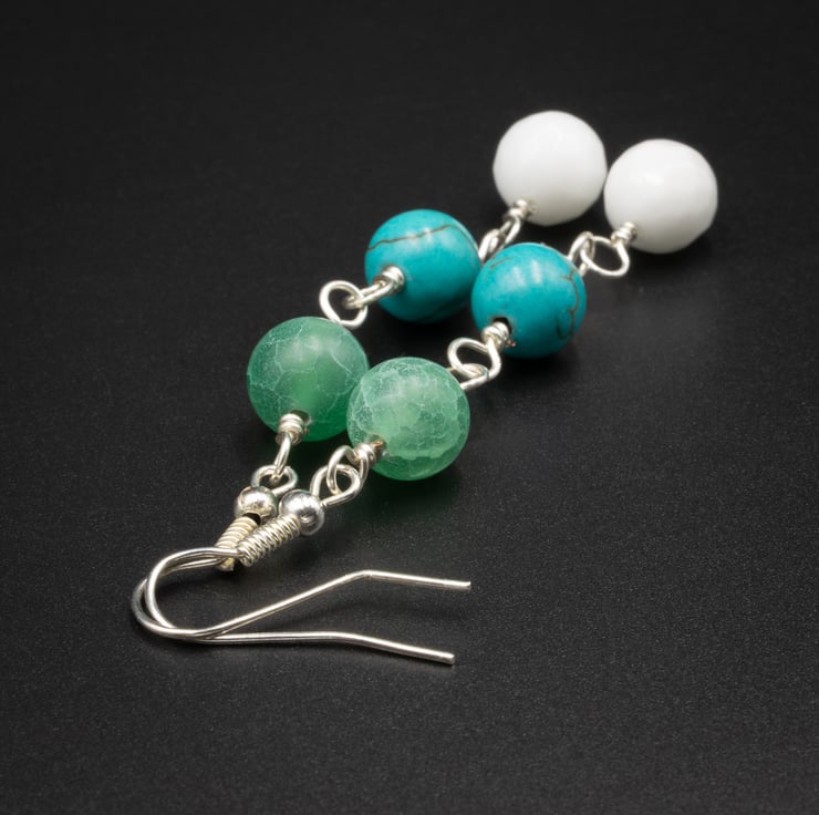Beads - 8mm rounds of turquoise, green agate and white agate.