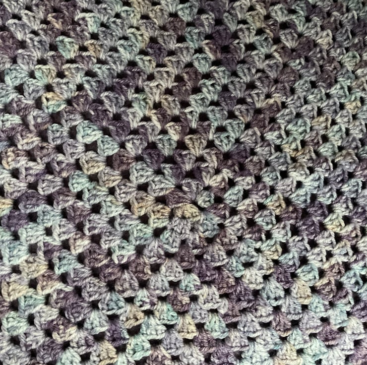 Crochet Blanket, handmade in muted Purple tone in a large granny square style.