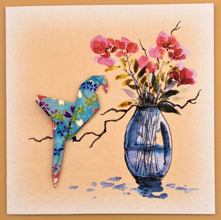 I love cards and keep favorite ones sent to me over the years. A handcrafted card can say so much and you can never go wrong with floral cards - I really enjoy painting flowers and adding the origami parrot makes a unique card. I also like playing around with the prints to achieve different effects, which I then use to make unusual and original cards. I like to think that someone might also keep one of my cards as a reminder of a special day - they look great framed.