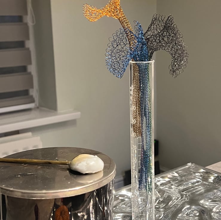 Colorful copper wire flowers - canbe customized price including 3 copper wire flowers with one glass tube.