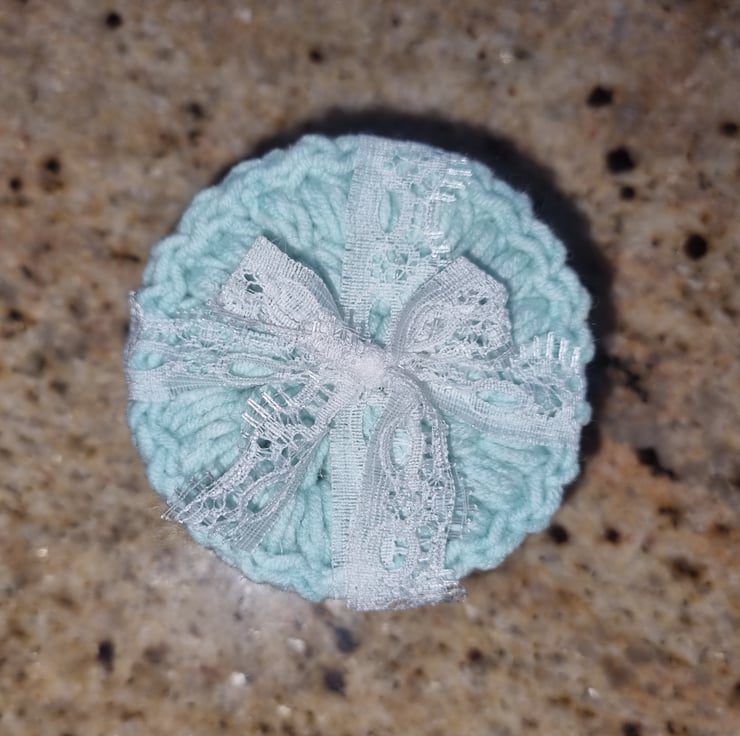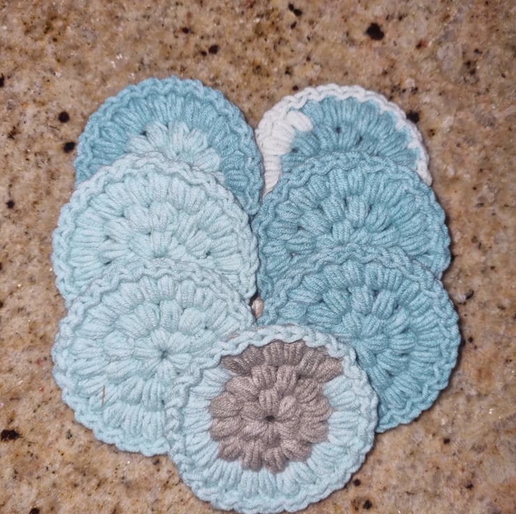Handmade reusable crochet face scrubbies that can also be used as makeup remover pads.