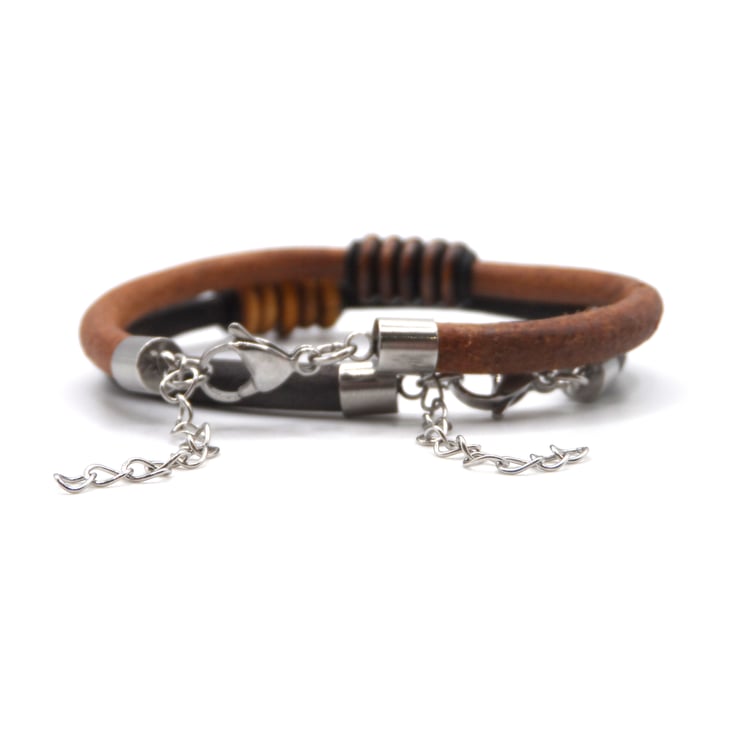 You can choose the length of your bracelet and the colour of the leather (either light brown, mid brown, dark brown or antique black leather) using the drop down option above.