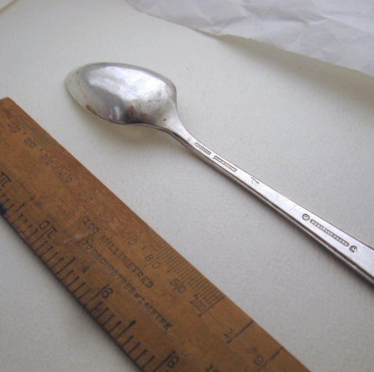 Please note this is a vintage spoon so it probably has has hairline scratches, tarnish, flaws and wear marks in the plating. This spoon has been around a bit and has character. It's a survivor. If you were looking for a mirror-finished brand new spoon, this isn't one. Just so you know. It is shinier than my photos make it look, though.