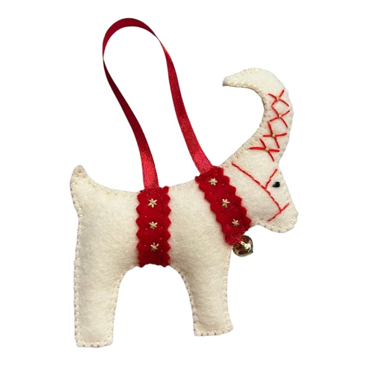 This unusual Scandi Christmas felt yule goat hanging decoration is my representation of the Scandanavian Yule Goat.