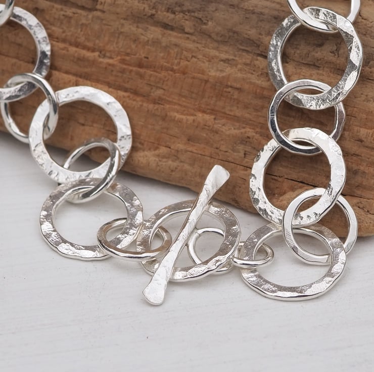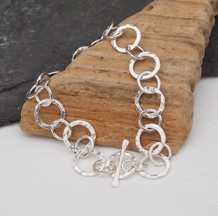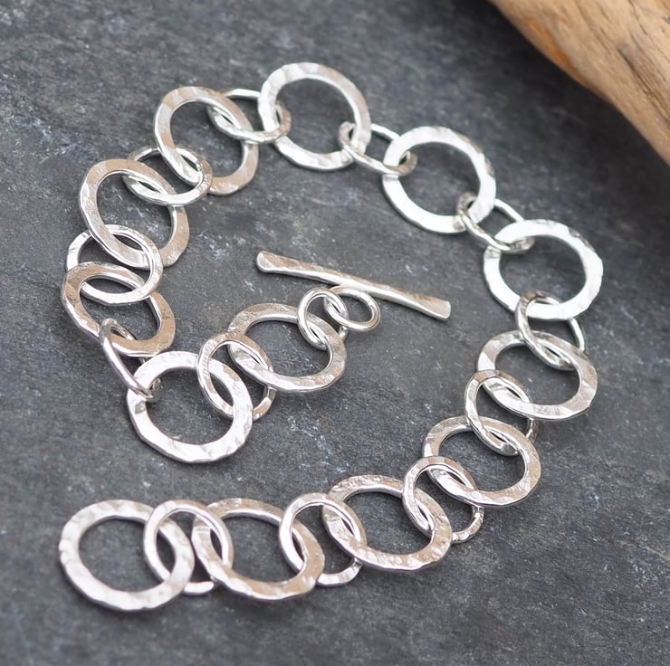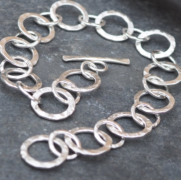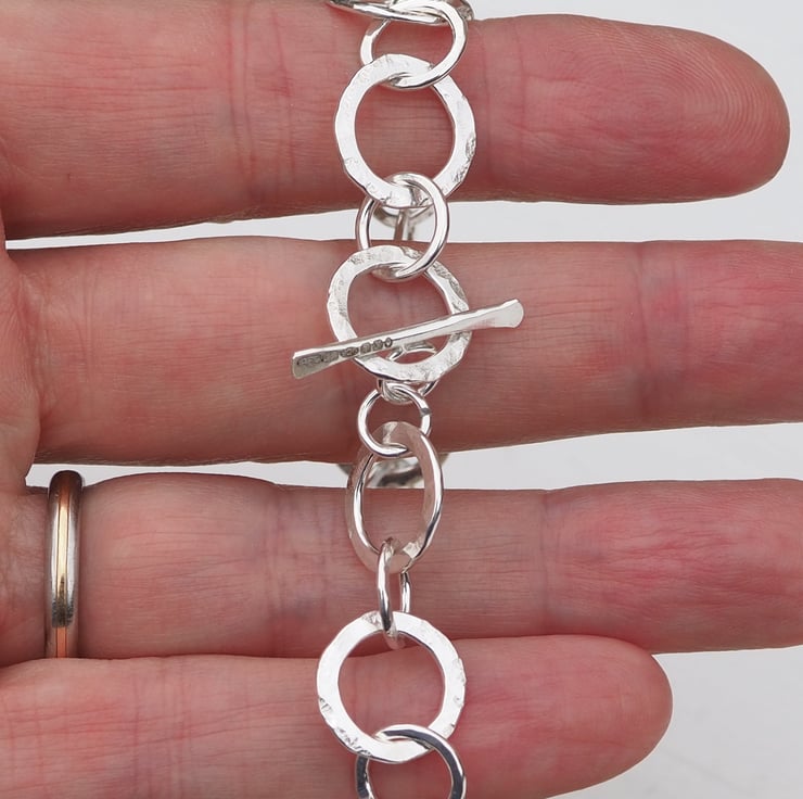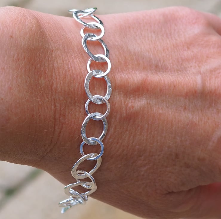 Hammered Argentium silver bracelet, round links. Handmade round chain link bracelet with hammered texture created with my favourite vintage hammer. The hammered texture gives a lovely sparkly finish to the silver.