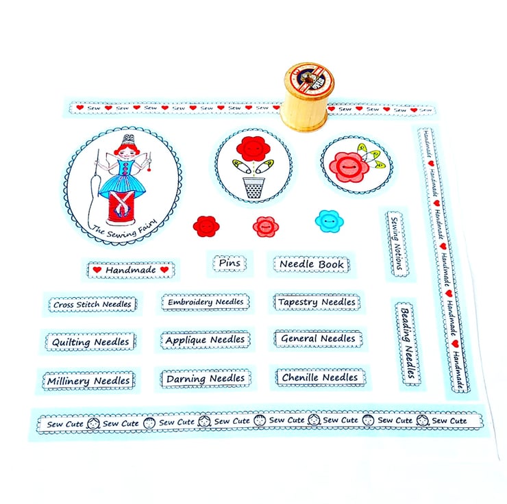 The Sewing Fairy fabric panel includes needle and other labels, some sewing theme fabric ribbon and cute images for decorating a needle book. It would make a lovely gift for someone who sews / embroiders, enjoys slow stitching / fabric journalling projects or keep it for yourself and have fun making your own needle book.